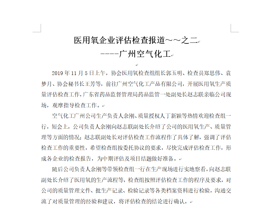 醫用氧企業評估檢查報道~~之一