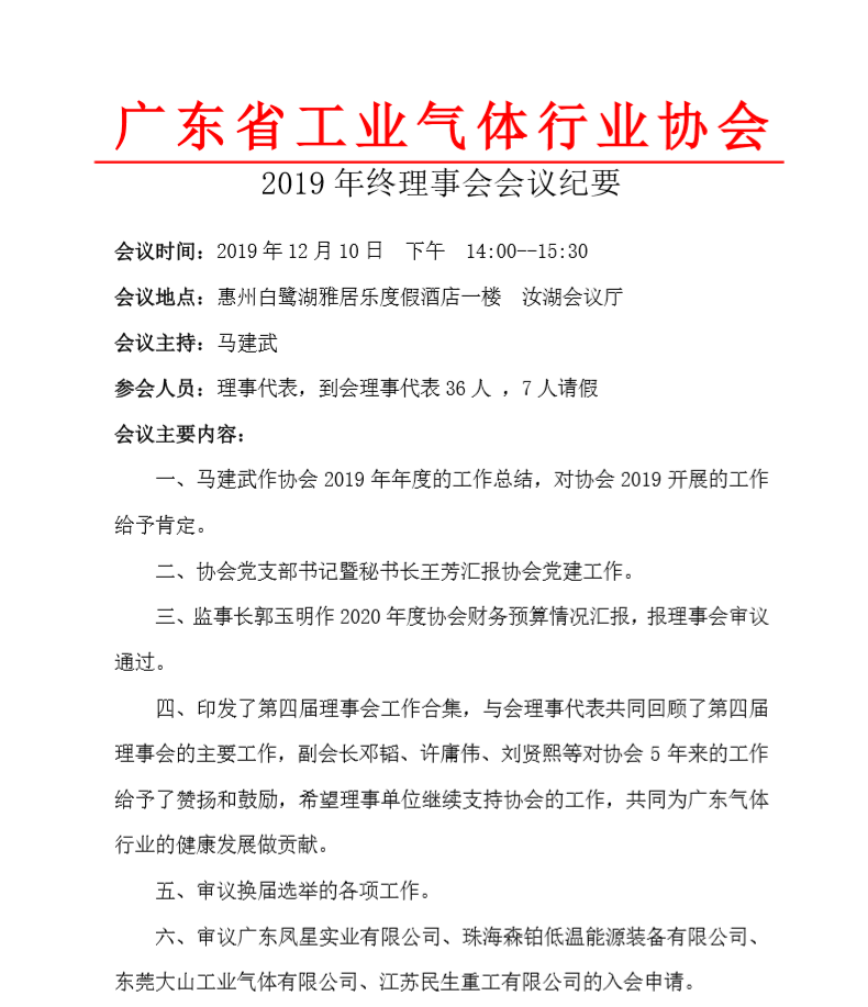 廣東省工業氣體行業協會第18次會員代表大會暨2019年會報道