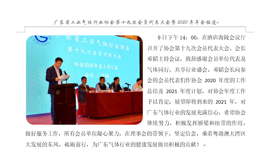 廣東省工業氣體行業協會第19次會員代表大會暨2020年會報道