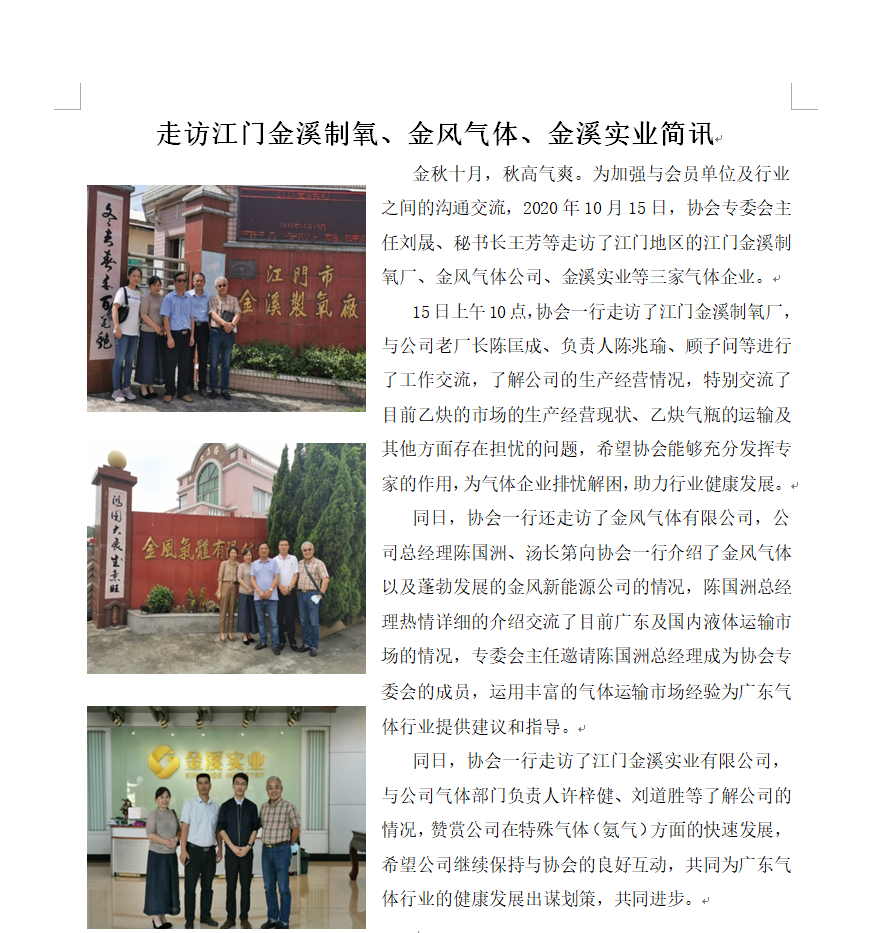 走訪江門金溪製氧、金風氣體、金溪實業簡訊