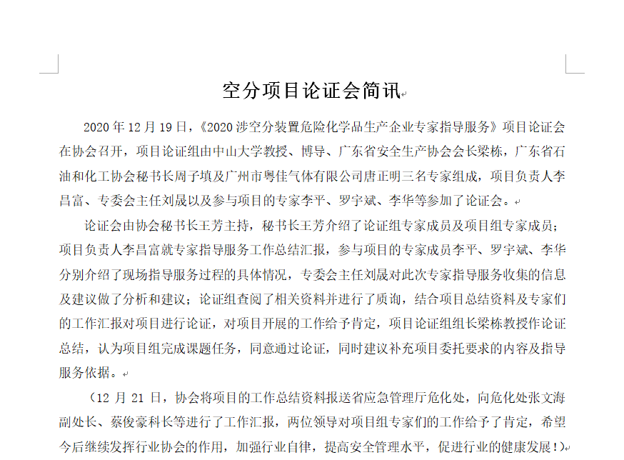 空分項目論證會簡訊