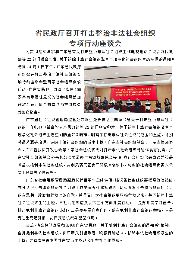 省民政廳召開打擊整治非法社會組織專項行動座談會