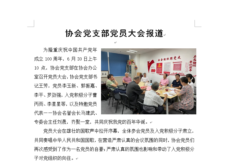協會黨支部黨員大會報道