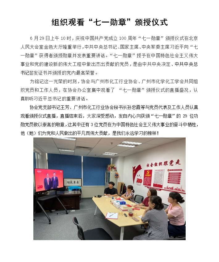 組織觀看“七一勳章”頒授儀式