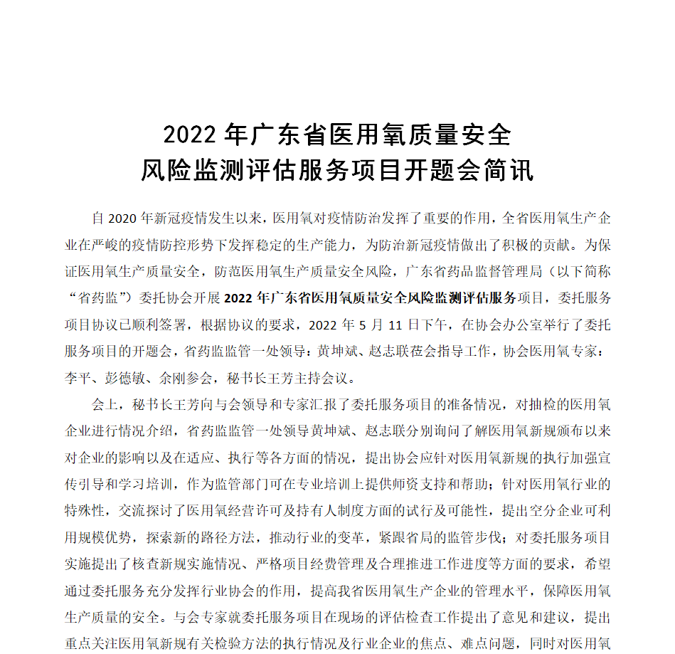 2022年廣東省醫用氧質量安全風險監測評估服務項目開題會簡訊