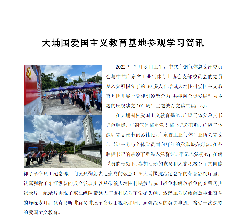 大浦圍愛國主義教育基地參觀學習簡訊