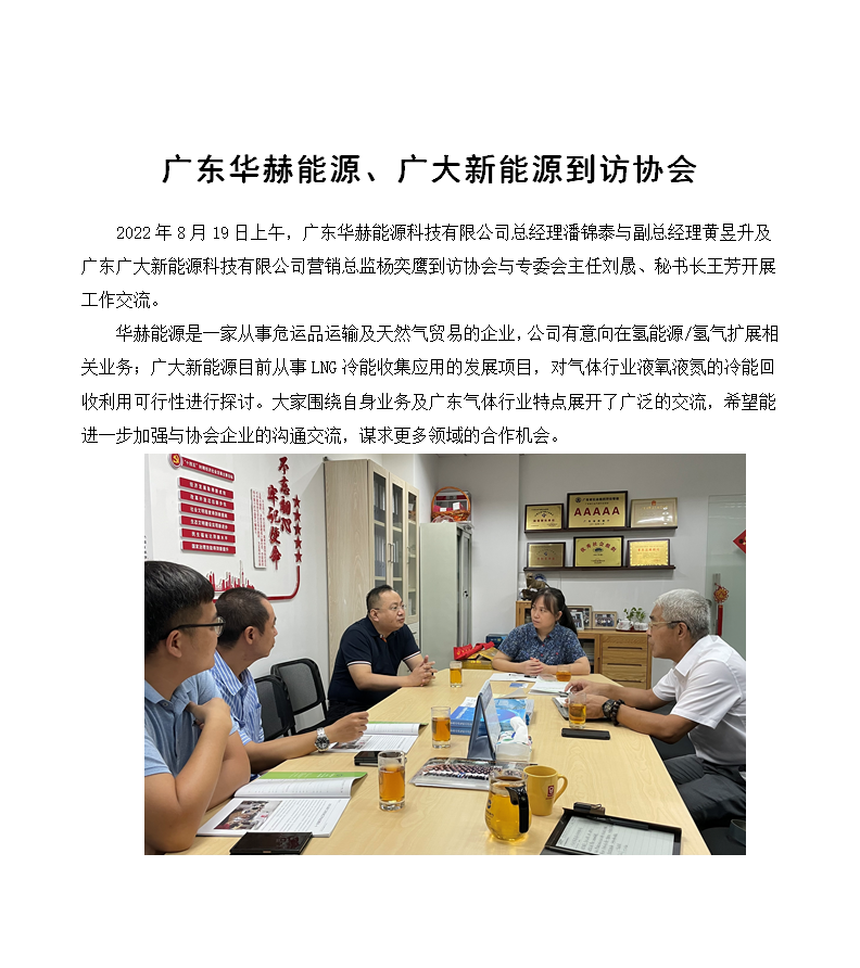 廣東華赫能源、廣大新能源到訪協會