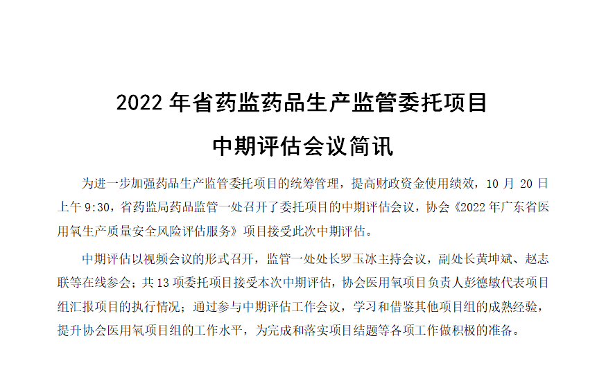 2022年廣東省醫用氧質量安全風險監測評估服務項目中期評估會議簡訊