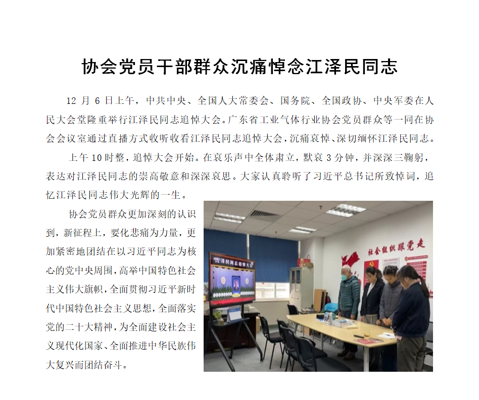 協會黨員幹部群眾沉痛悼念江澤民同誌