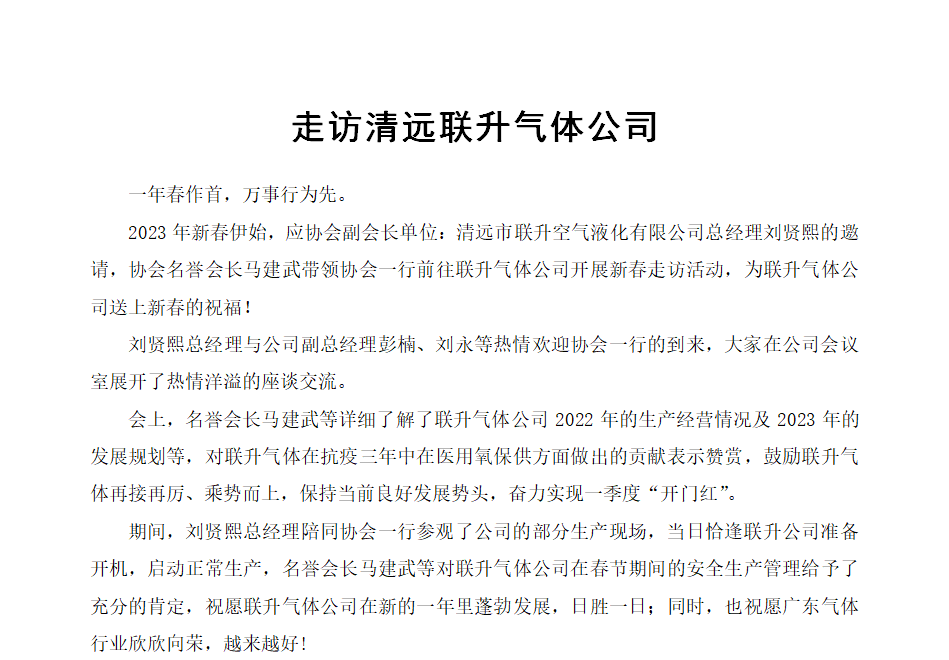 走訪清遠聯升氣體公司