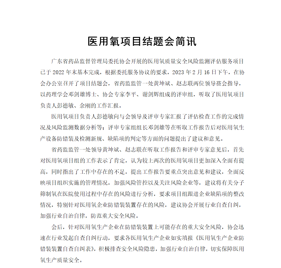 醫用氧項目結題會簡訊