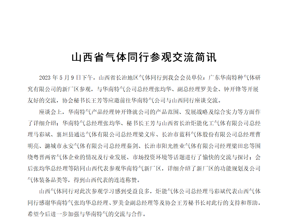 山西省氣體同行參觀交流簡訊