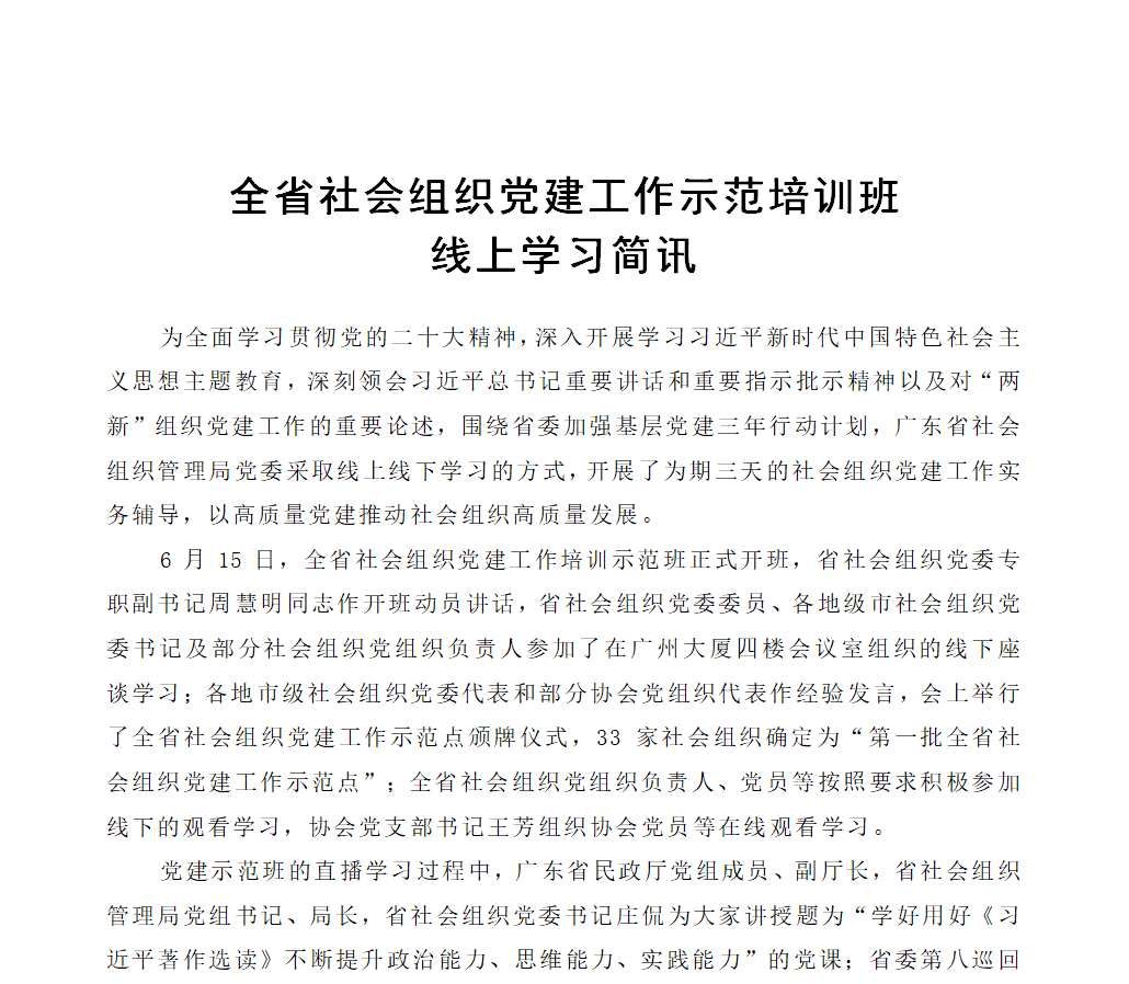 全省社會組織黨建工作示範培訓班線上學習簡訊