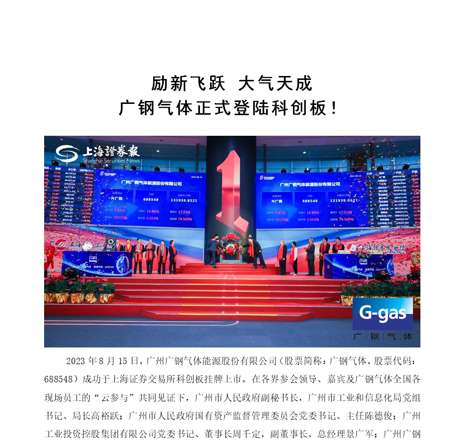 熱烈祝賀廣鋼氣體正式登陸科創板!
