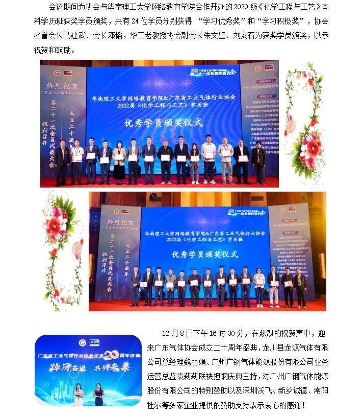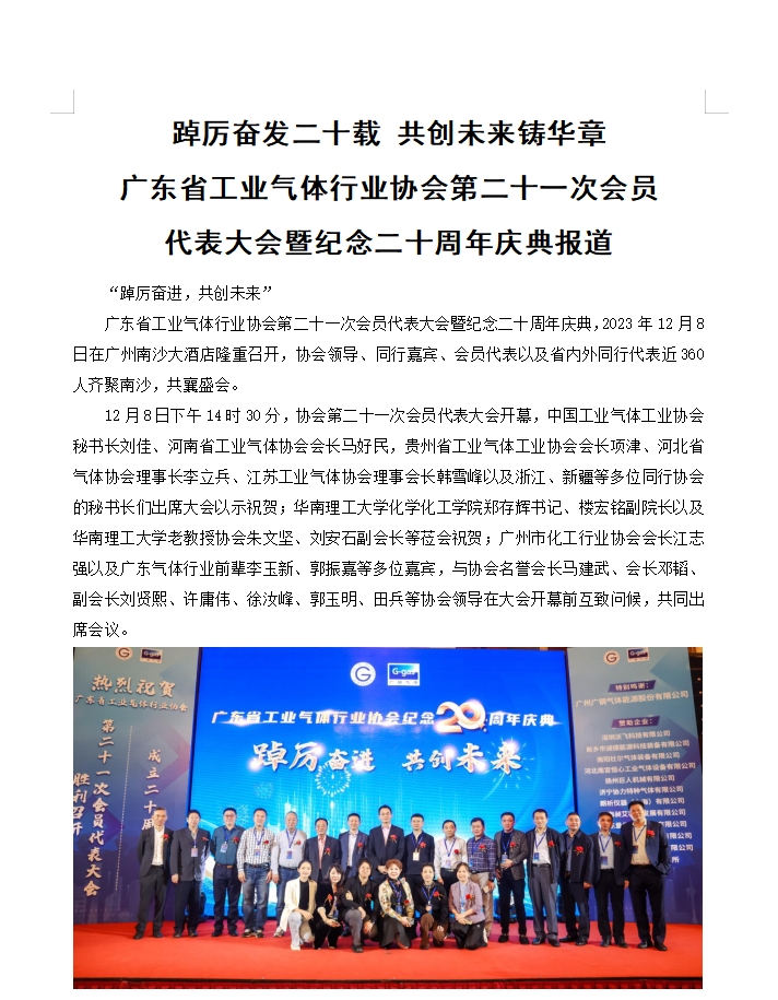 廣東省工業氣體行業協會第二十一次會員 代表大會暨紀念二十周年慶典報道