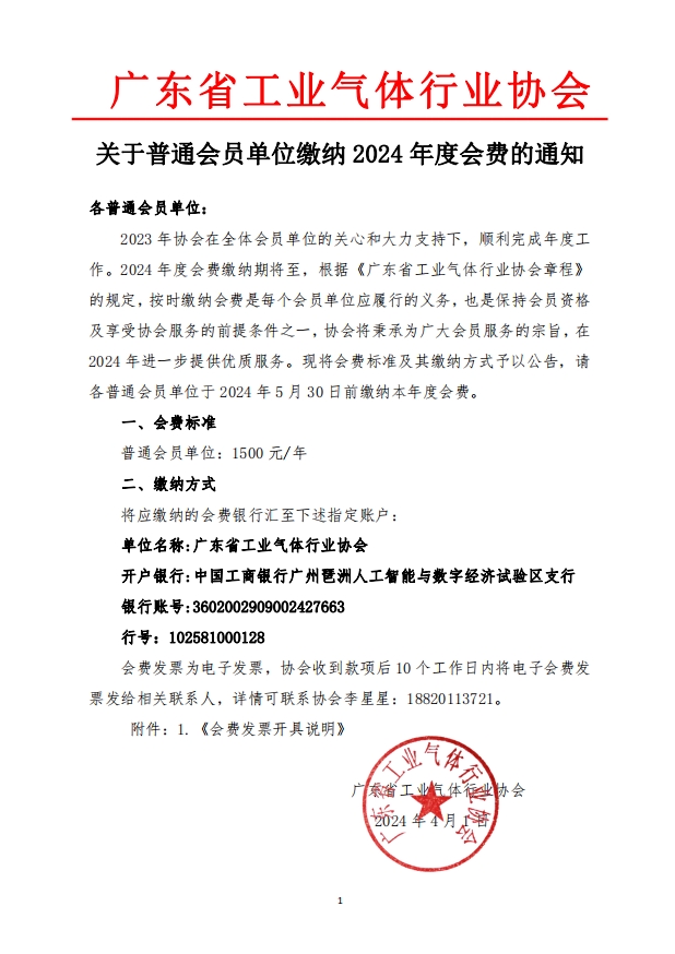 關於普通會員單位繳納 2024年度會費的通知