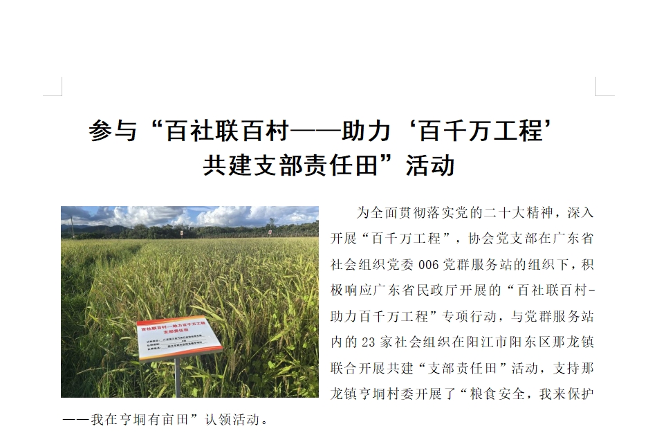 參與“百社聯百村——助力‘百千萬工程’ 共建支部責任田”活動
