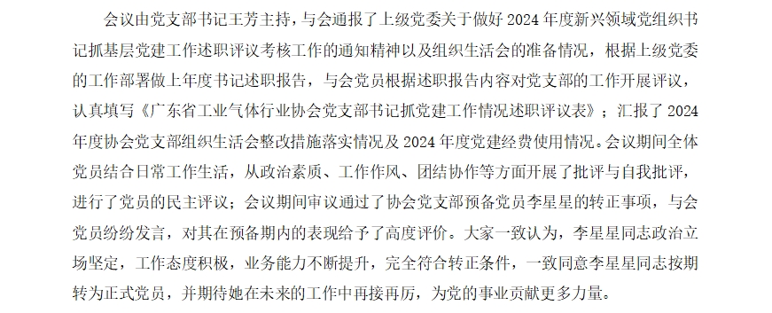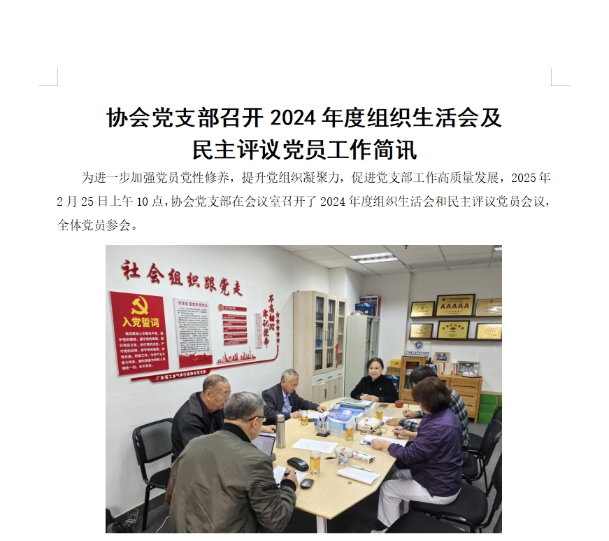 協會黨支部召開2024年度組織生活會及民主評議黨員工作簡訊