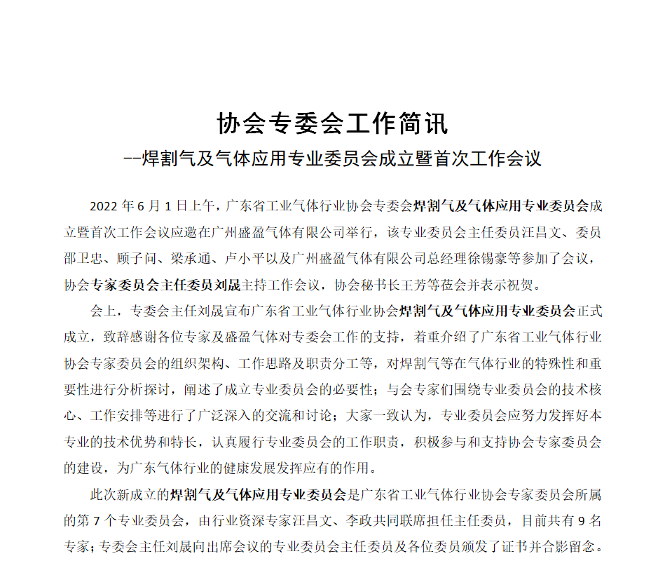 協會專委會工作簡訊 --焊割氣及氣體應用專業委員會成立暨首次工作會議
