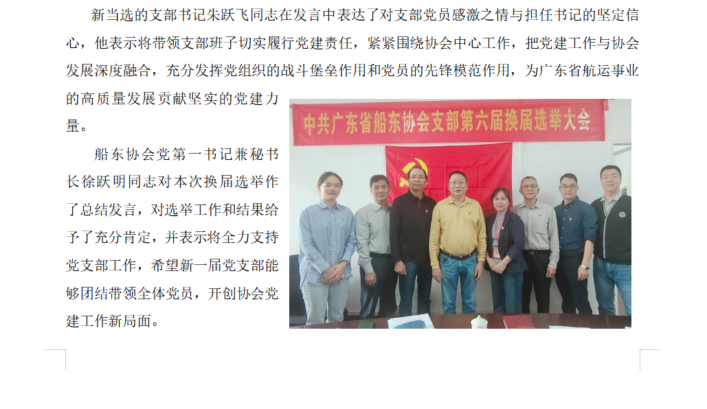 參加廣東省船東協會黨支部換屆選舉大會