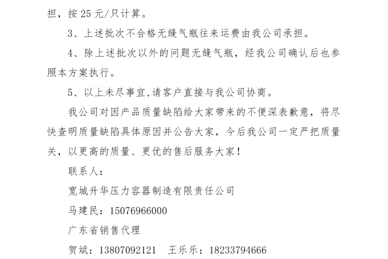 關於廣東市場KC鋼瓶的處理公告