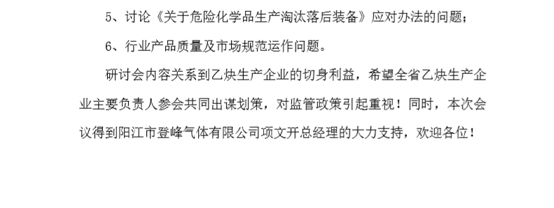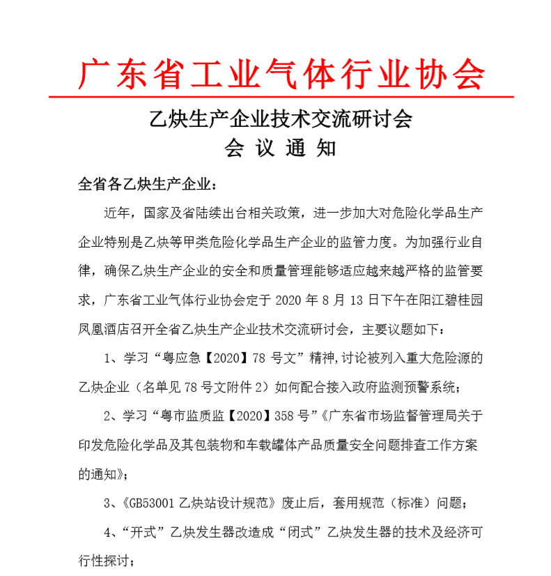 乙炔生產企業技術交流研討會會議通知