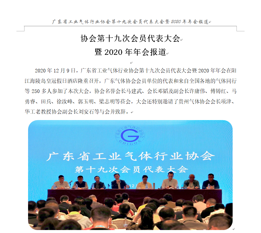 廣東省工業氣體行業協會第19次會員代表大會暨2020年會報道
