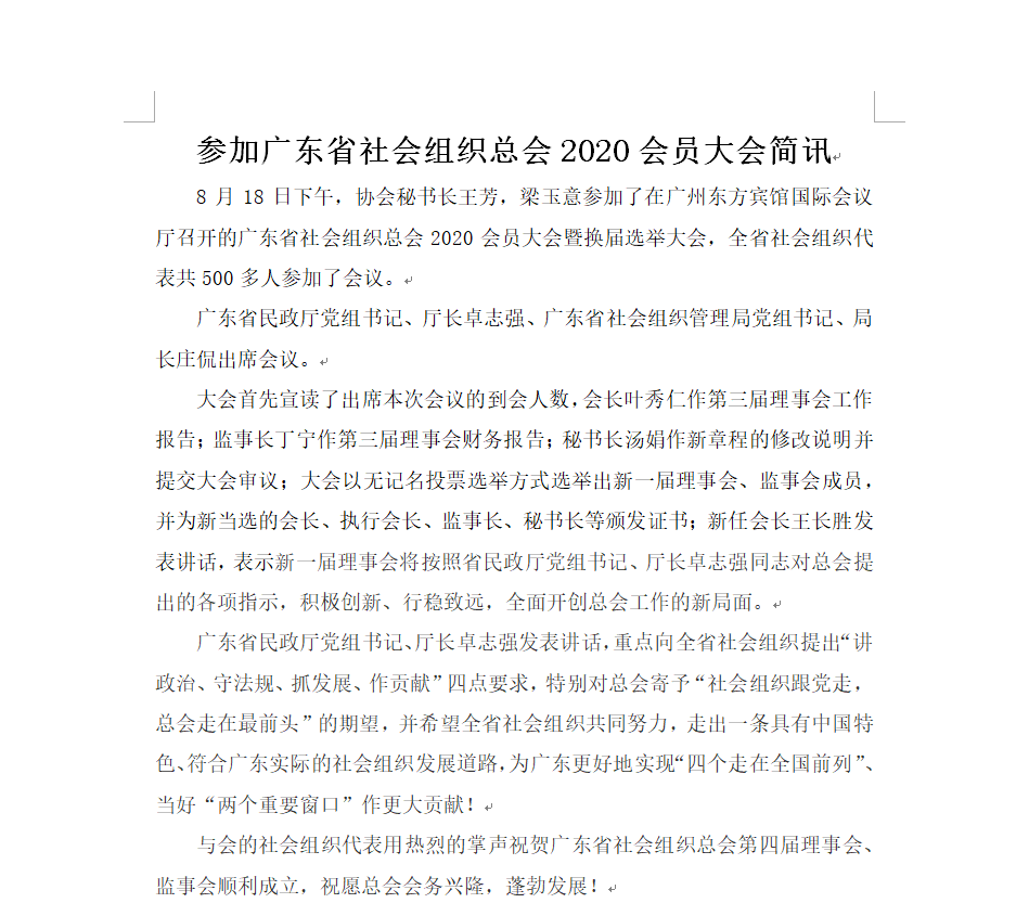 參加廣東省社會組織總會2020會員大會簡訊