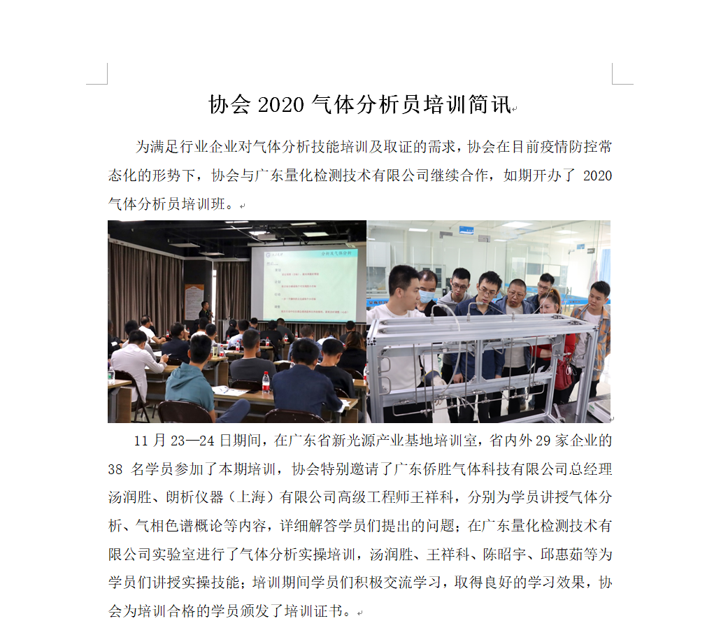 協會2020氣體分析員培訓簡訊
