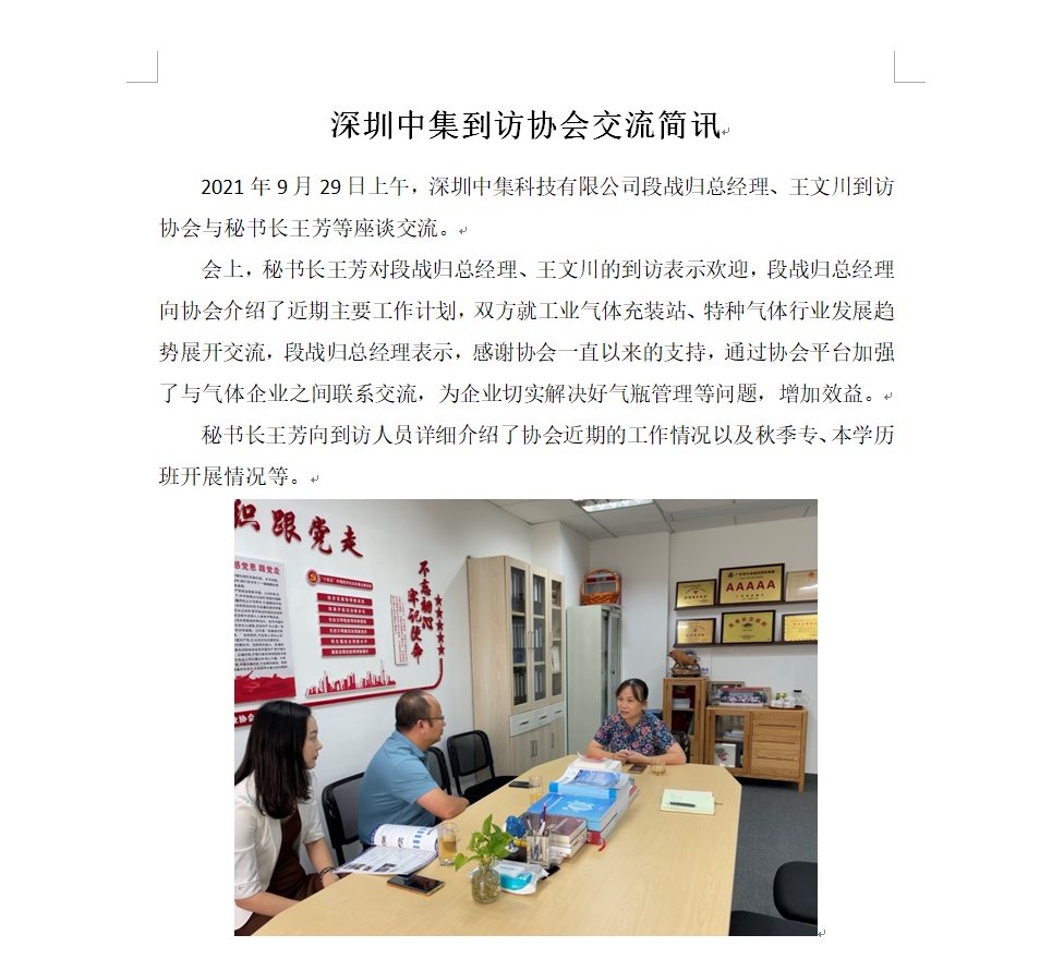 深圳中集到訪協會交流簡訊