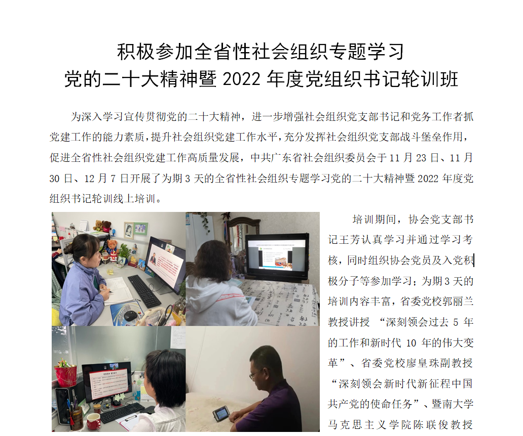 積極參加全省性社會組織專題學習黨的二十大精神暨2022年度黨組織書記輪訓班