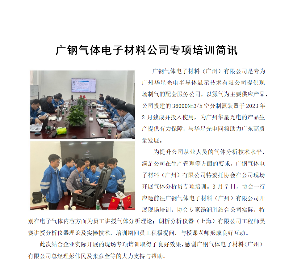 廣鋼氣體電子材料公司專項培訓簡訊