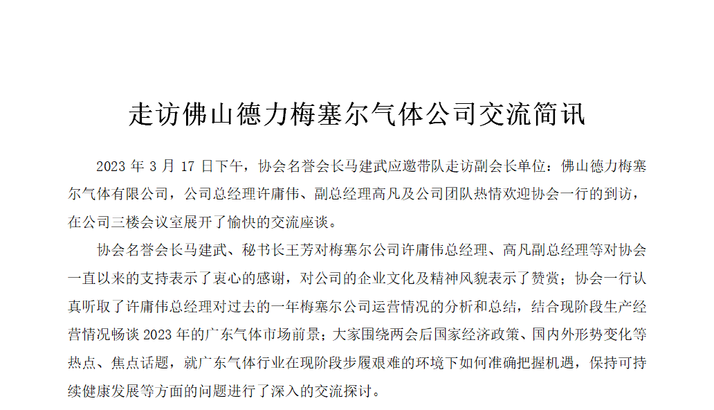 走訪佛山德力梅塞爾氣體公司交流簡訊