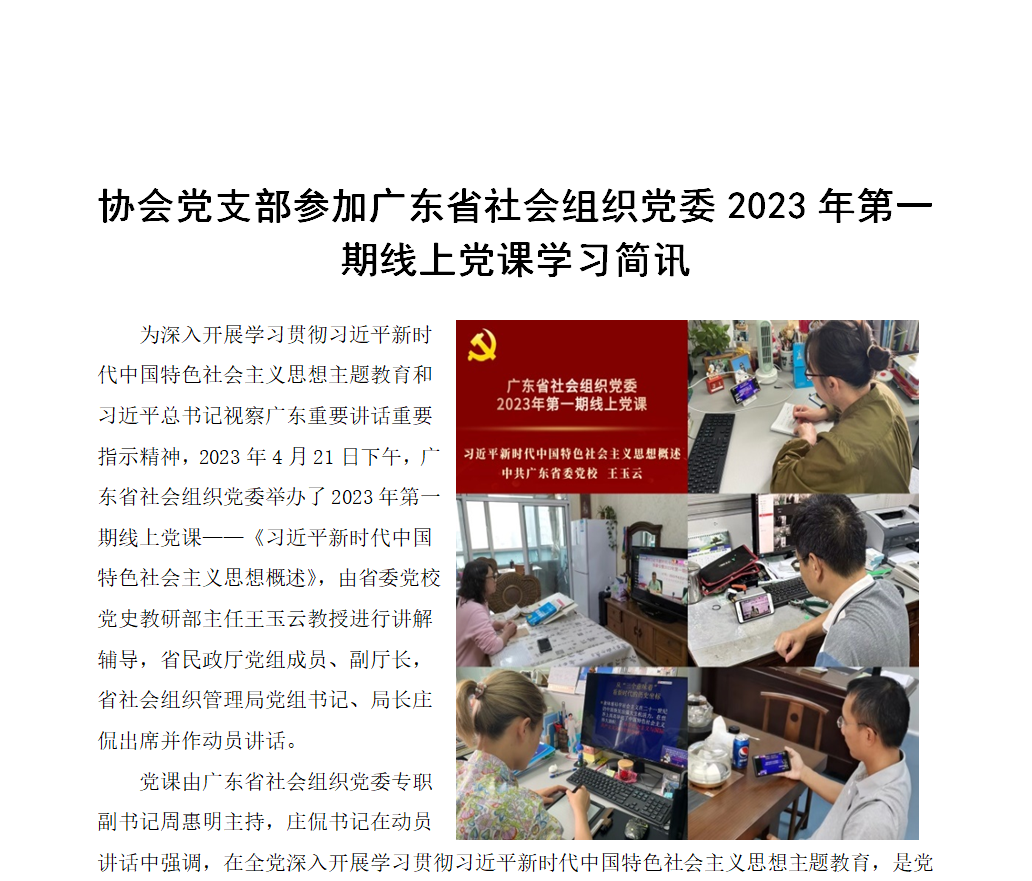 協會黨支部參加廣東省社會組織黨委2023年第一期線上黨課學習簡訊