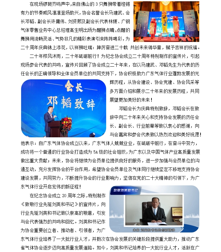 廣東省工業氣體行業協會第二十一次會員 代表大會暨紀念二十周年慶典報道