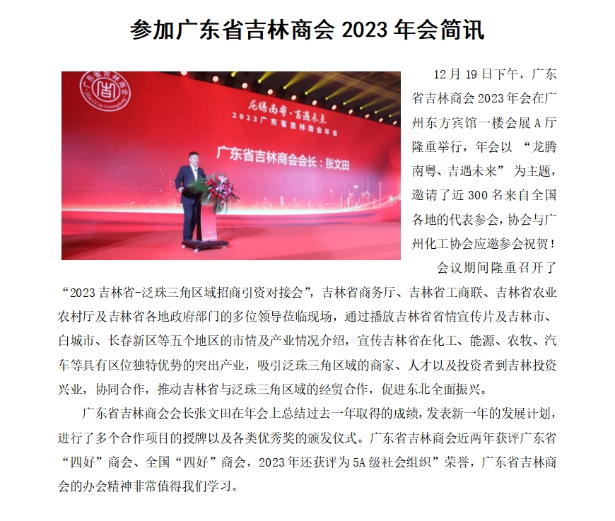 參加廣東省吉林商會2023年會簡訊