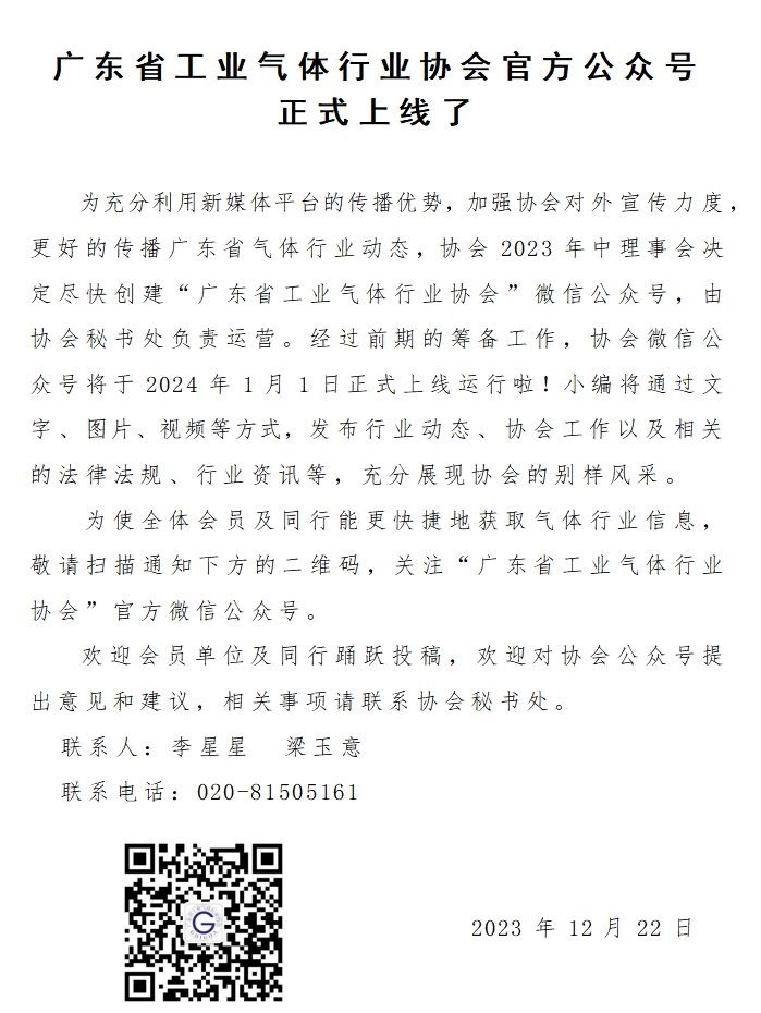 廣東省工業氣體行業協會官方公眾號 正式上線啦!