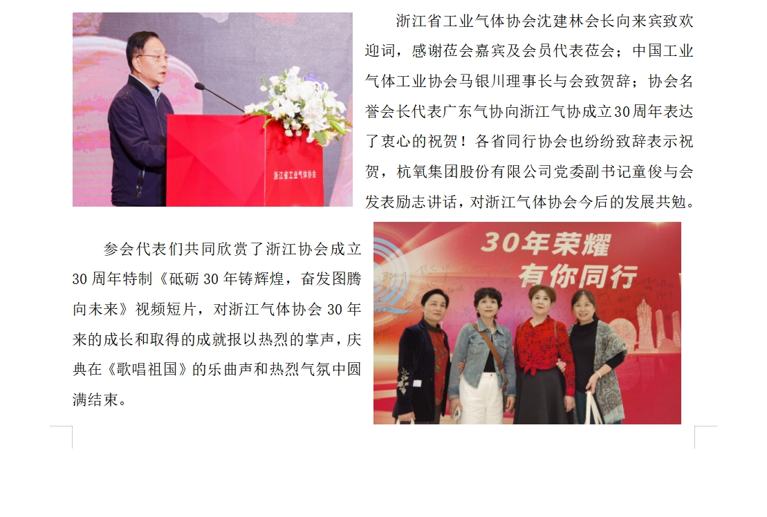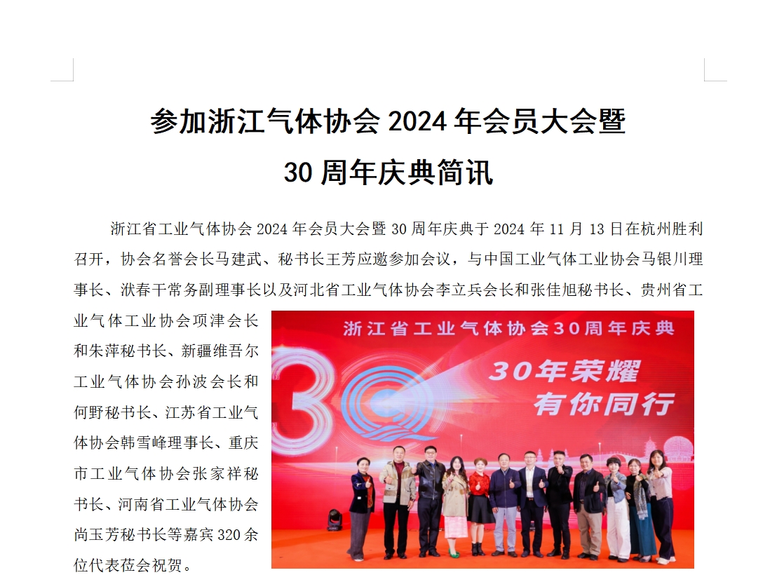 參加浙江氣體協會2024年會員大會暨 30周年慶典簡訊
