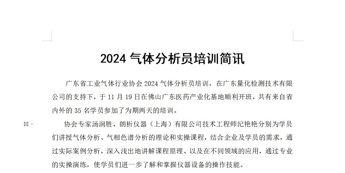 2024氣體分析員培訓簡訊