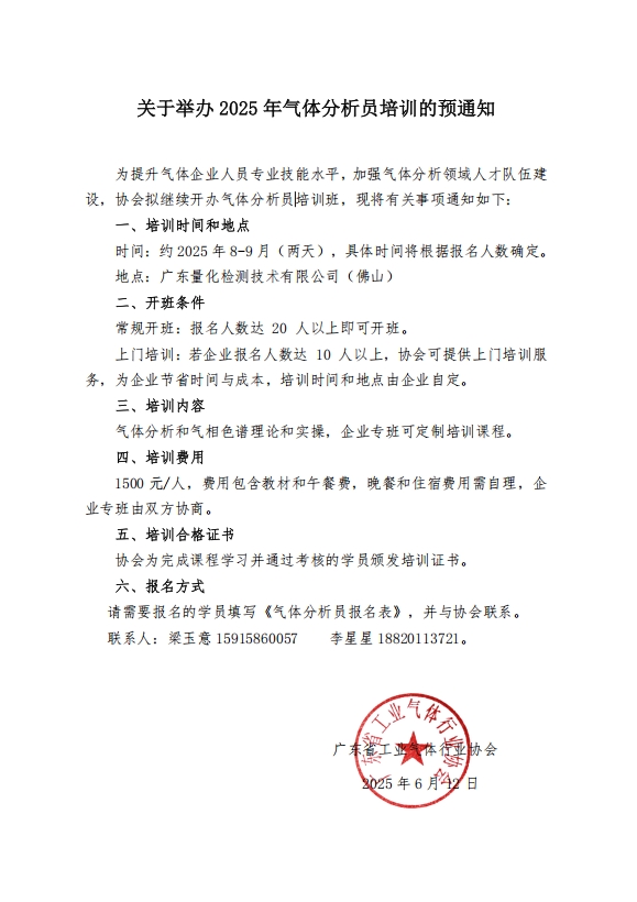 關於舉辦2025氣體分析員培訓的通知