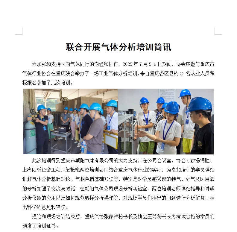 聯合開展氣體分析培訓簡訊