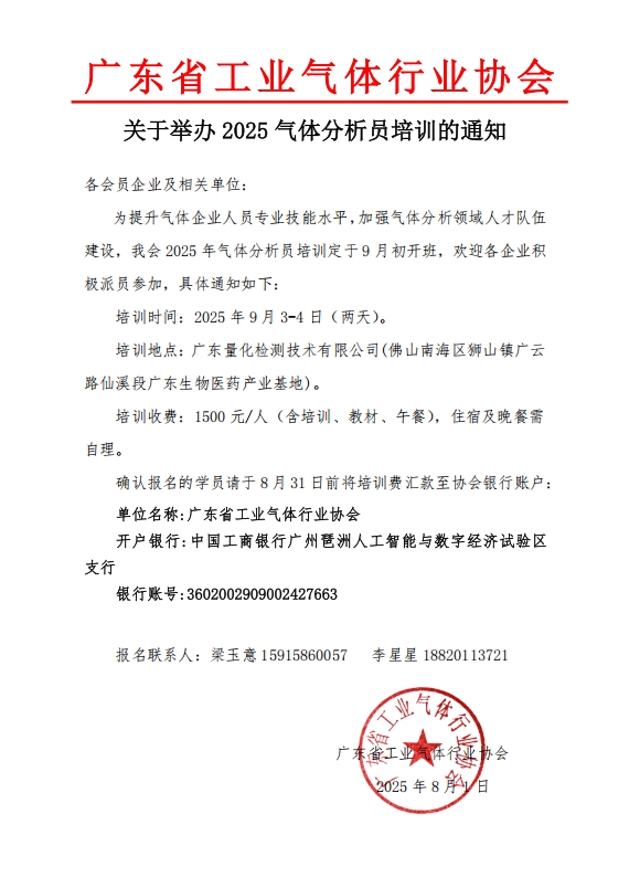 關於舉辦2025氣體分析員培訓的通知