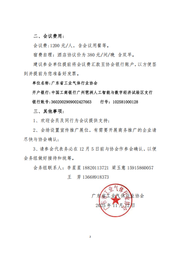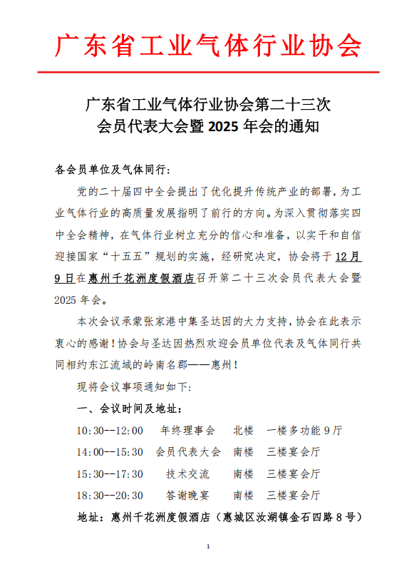 廣東省工業氣體行業協會第二十三次會員代表大會暨 2025 年會的通知