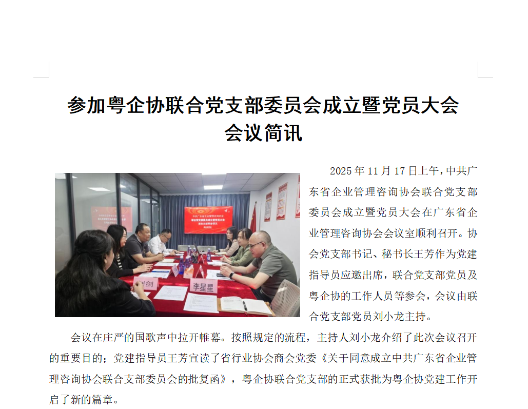 參加粵企協聯合黨支部委員會成立暨黨員大會會議簡訊