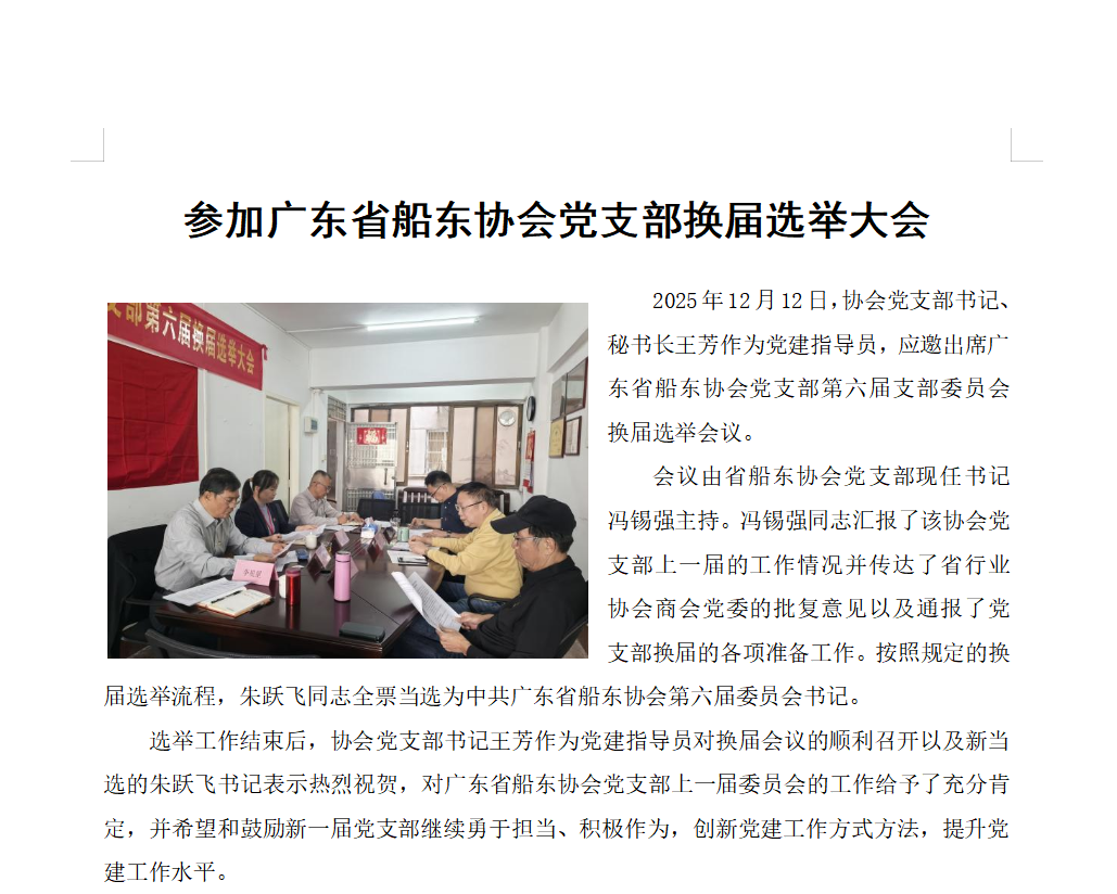 參加廣東省船東協會黨支部換屆選舉大會