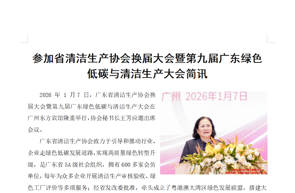 參加省清潔生產協會換屆大會暨第九屆廣東綠色低碳與清潔生產大會簡訊